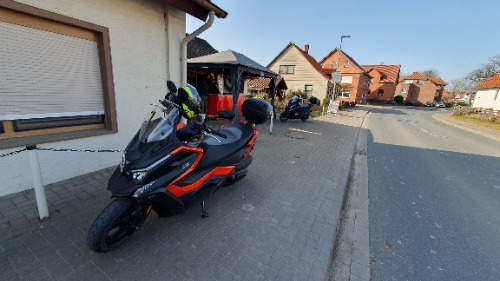 Heute Mittag noch die Roller bewegt. Bei schönsten Wetter eine kleine Tour gemacht. Dabei haben wir einen Garagenimbiss entdeckt, der original Thüringer Bratwurst anbot. Da mein Schatz ihren Grossen kennt, haben wir angehalten und eine gegessen, um den kleinen Hunger zu stillen. Super lecker, tolles Team und im ganzen gut.